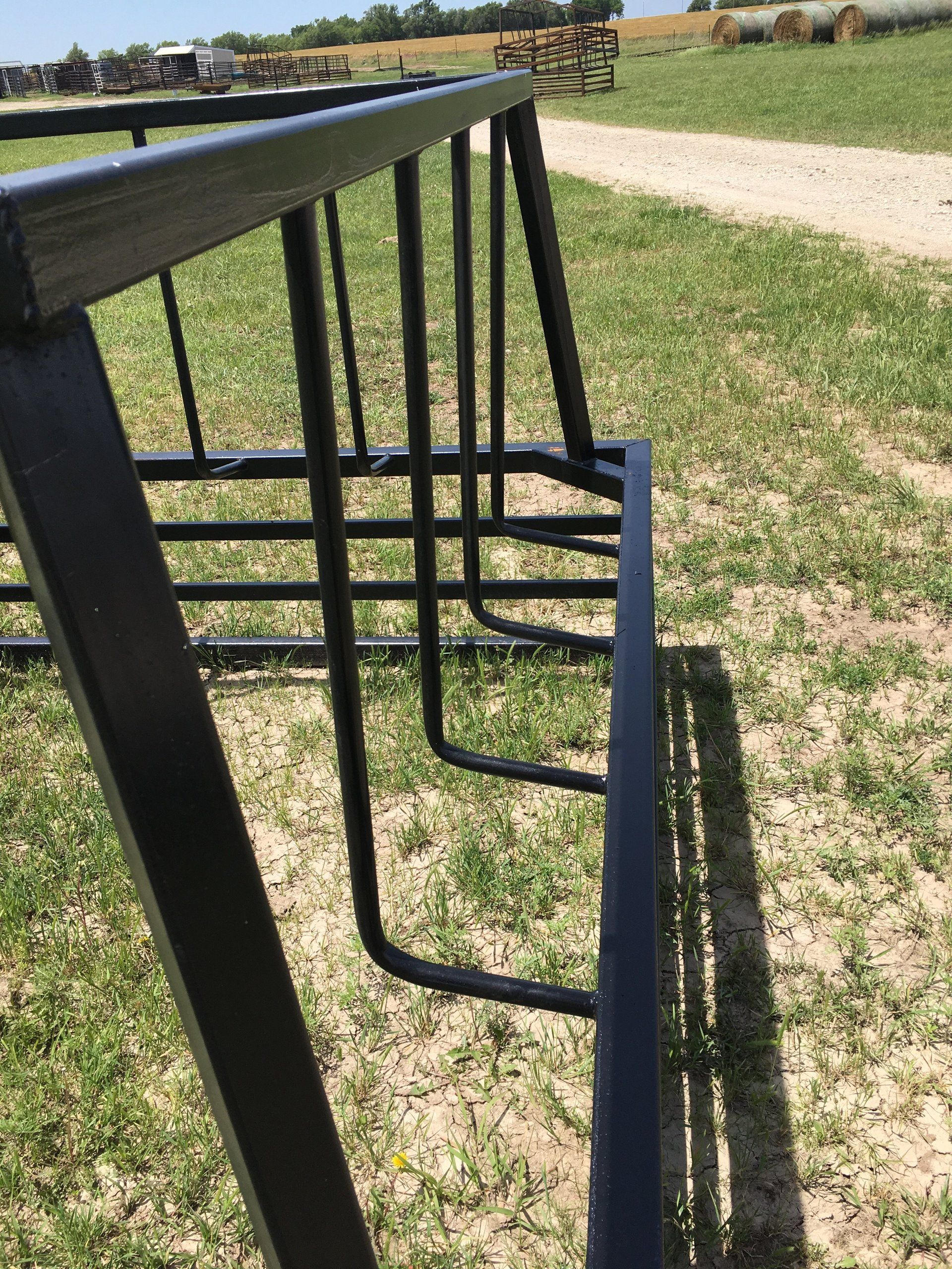 Our bale bed feeder is designed specifically for using with the bale bed on a back of your truck. One side of this feeder is slanted down and slightly shorter, allowing you to get your arms to release the bale without the worry of hitting the feeder.